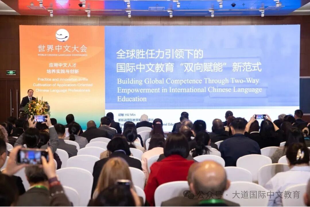新航道董事长胡敏出席大会,并在“应用中文人才培养实践与创新”平行会议中发表主题为《全球胜任力引领下的国际中文教育“双向赋能”新范式》的发言。他指出,新时代的国际中文教育驱动力在于“双向赋能”:一方面“向外赋能”,通过中文教育赋予学习者分析中国议题、理解中国视角、与中国伙伴有效互动的能力;另一方面,真实的产业需求正“向内赋能”国际中文教育,反向定义了高端应用型中文人才的标准。
